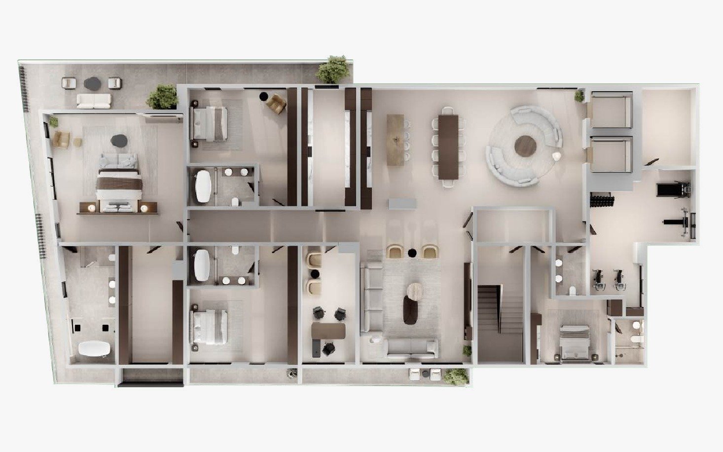 Second Floor (Wellness & Connection): A private sanctuary featuring a Zen Garden, Spa, Salon, Kids Playroom, and a unique Amphitheatre.